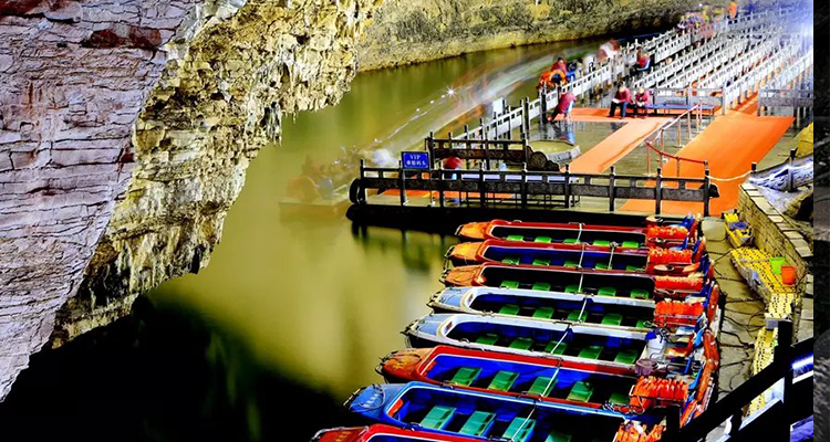 黃龍洞位于索溪峪東面,被稱為“地下魔宮”,洞口霧靄迷漫,洞內(nèi)長廊蜿蜒,鐘乳懸浮,石柱石筍林立,還有石簾、石幔、石花、石琴,琳瑯滿目,異彩紛呈,令人目不暇接?!岸赐舛础薄ⅰ皹峭鈽恰?、“天外天”、“山外山”,盤根錯節(jié)。黃龍洞內(nèi)可分四層,水陸并進,從最低陰河至最高穹頂,垂直高度差有100多米,洞內(nèi)有一個水庫(黃龍水洞)、二條陰河(響水河、水晶河)、三個地下瀑布(黃龍瀑、天水瀑、天地瀑)、四個水潭、十三個廳(宮)(龍舞宮、水晶宮、迷人宮……)、九十六條游廊,長度約達15公里,最大的廳堂有12000平方米,可容納萬人。真可謂是洞中乾坤大,地下有洞天。入黃龍洞,如入人間仙境一般。