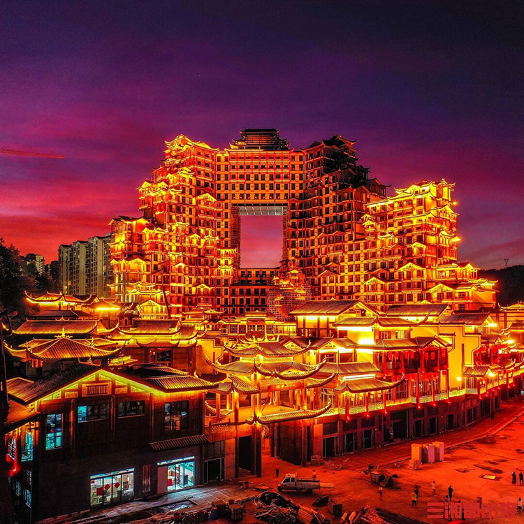 它將獨(dú)特的土家族建筑奇觀與現(xiàn)代光影科技(如全息投影、互動(dòng)燈光秀)完美結(jié)合,打造出極具沉浸感的夜間文化體驗(yàn)場景,并通過引入豐富的地方非遺展示、特色美食集市與沉浸式演藝活動(dòng),成功激活區(qū)域夜游經(jīng)濟(jì),為游客提供了傳統(tǒng)與現(xiàn)代交織的全新文旅樣本,引領(lǐng)了沉浸式文化夜游的新風(fēng)潮。