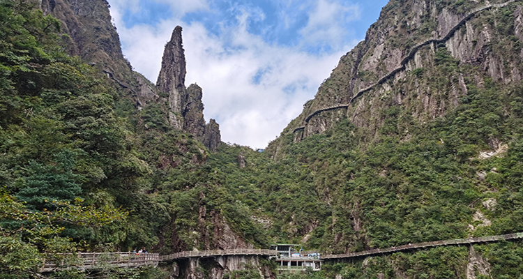 從東門徒步上山,穿越峽谷,一路欣賞原始森林的美景,感受大自然的靜謐與神秘。歷經(jīng)艱辛登頂五指峰,俯瞰群山連綿,成就感油然而生。最后從西門乘坐纜車下山。此路線適合體力充沛、熱愛登山挑戰(zhàn)的游客,但需注意,全程耗時較長,對體能要求較高,游玩后腿部可能會有明顯酸痛感 。