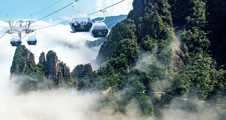 乘坐奧地利進(jìn)口的五指峰索道,全長 3.7 公里,是全國單線最長的索道,極限垂直高差達(dá) 1000 米。每小時客單向運(yùn)量最多 2000 人,運(yùn)行速度最快達(dá) 6 米 / 秒,最快單向運(yùn)行時間僅 11 分鐘。乘坐索道,可近觀五指峰,遠(yuǎn)眺天臺峰,仿佛騰云駕霧,穿梭于仙境之中 。